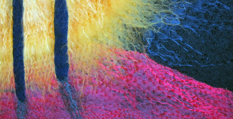 It is not recommended to "finish" a work and then decide that it's not finished. I had to remove/undo a lot of the finishing work in order to continue, such as the label, the velcro for hanging and the binding. Sometimes making textile art involves a lot of hassle.
